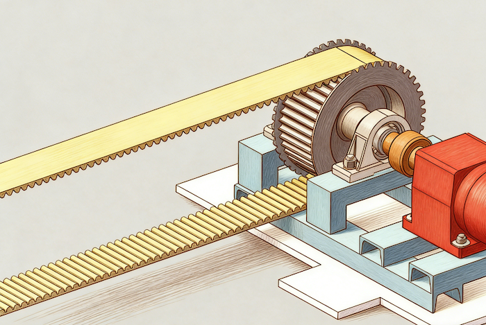 This type of mechanism is the simplest circular linear scheme, with a typical example being a synchronous pulley belt (Figure 2). The synchronous pulley belt is composed of a synchronous pulley and a synchronous belt. The synchronous pulley and the synchronous belt connected to the motor output shaft are connected through a tooth groove structure. This structure is easy to assemble, flexible, low-noise, and low-cost. When the load is not large, it can ensure good accuracy and synchronization. However, due to the low strength and certain elasticity of the belt, it cannot guarantee accuracy and reliability under high loads. The use of metal wire/high-strength woven material lining belts can greatly compensate for the defects of synchronous pulley belts, and has indeed become an increasingly popular choice for linear mechanisms.