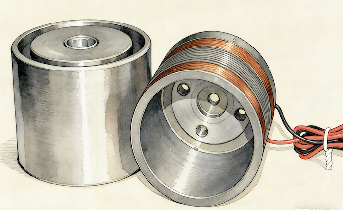There is also a type of linear motor similar to the dynamic coil structure of a loudspeaker (Figure 7), called a "voice coil" motor. The structure is shown in Figure 8, and its principle is exactly the same as that of a loudspeaker. By controlling the current in the coil to control the magnitude and direction of the force on the coil, it outputs reciprocating linear motion.